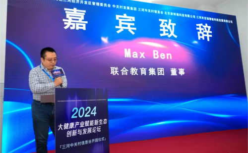 美國南丁格爾研究所委員、美國聯合教育集團董事MaxBen在致辭中表示:此次論壇以“聚力創新力,共創新未來”為主題,旨在深入探討大健康產業的前沿動態和發展趨勢,也是促進國際間交流與合作,推動大健康產業的高質量發展。這是一個充滿希望和活力的時代,也是一個充滿挑戰和機遇的時代。在這樣的背景下,我們更需要攜手合作,共同應對挑戰,把握機遇,推動大健康產業的持續發展。