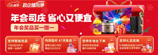 除了京東黃金水餃,在京東“企業年貨節”期間,還為企業客戶們提供了年會司慶、商務禮贈、員工福利等年底采購高頻場景的一站式好物。現在成為京東企業會員,還能享受企業專享價、階梯價、團購折扣等專享價格權益,以及年會禮品買一送一、跨店每滿300減40等優惠福利,企業新客首次下單還可獲218元無門檻金采優惠券。