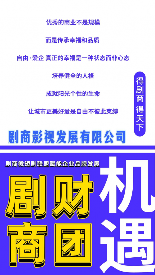 劇商影視(深圳)發展有限公司是深圳短劇基地的重要成員之一,也是“光明計劃”的核心執行單位。落地深圳光明區一萬平方米、劇商影視微短劇展覽館,公司定位方針政策標準化出海,致力于將中國的企業品牌賦能出海業務,帶來長期經紀鏈條稅收政策發展。作為一家短劇品牌公司,劇商影視擁有20年的互聯網營銷經驗,攜手全國精英共同打造中海外短劇賽道業務。