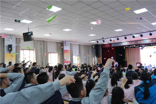 分享結(jié)束后,鄉(xiāng)村筆記工作人員帶領(lǐng)孩子們進入“種草一個小夢想”互動環(huán)節(jié)。活動中,孩子們將夢想和對未來的期待寫在卡紙上、并折成紙飛機,一起丟出“飛向未來的紙飛機”。在現(xiàn)場的小紅書行業(yè)營銷總監(jiān)&公益營銷負責人天菜及特邀“種草官”中國青年歌手、演員周覓和中國青年演員左葉等還分別撿起了紙飛機,對孩子們的夢想做出鼓勵。