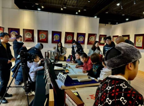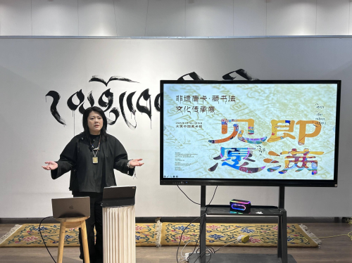 活動現場,非遺玉赤烏金體這一最古老的藏文字傳承人藏族書法家熱吉老師成為眾人焦點。熱吉老師深入講解了藏族書法源遠流長的歷史,從古老的起源到歷代的傳承演變,讓聽眾仿若穿梭于歲月長河,見證這一藝術形式的發(fā)展。同時,他現場展示高超技法,一筆一劃盡顯藏文書法的獨特韻味,并帶領現場觀眾親手體驗書寫藏書法的魅力。