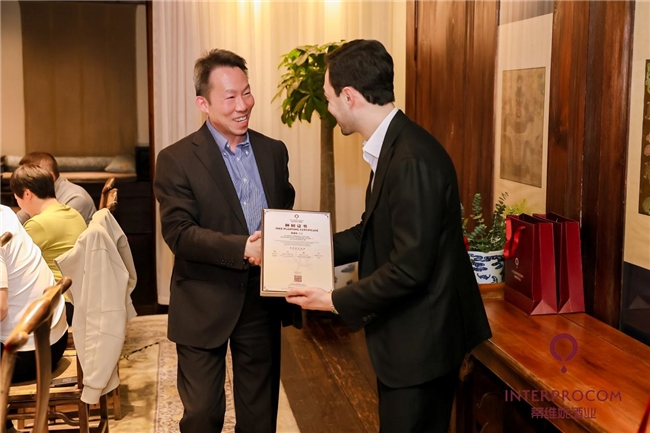 蒂維妮集團(tuán)北京分公司總經(jīng)理Tiziano Mazzanti(右)為客人頒發(fā)植樹證書。