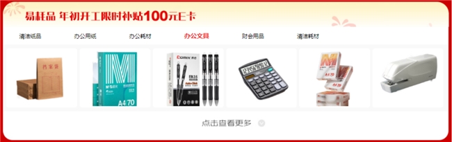 紙筆文具、打印紙、硒鼓墨盒、行政財務用品……開工采購日用耗材類商品最為繁瑣,可又缺一不可。在“政企開工季”期間,京東企業購聯合得力、晨光、天章、金光APP、格之格、彩格、西瑪等品牌伙伴,為企業客戶帶來了清潔紙品、辦公用紙、辦公耗材、辦公文具、財會用品、清潔耗材等辦公日用和耗材類產品。企業客戶不僅能夠一站式下單,輕松配齊全品類耗材產品,還可以享受多買多優惠的企業專享權益,進一步實現開工采購降本增效。