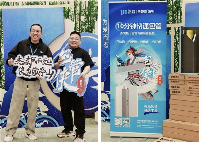 在本次大會上,安徽杰愛新材料股份有限公司重磅宣發2025年度杰愛新品-杰愛包管俠。杰愛包管俠,如同一位身懷絕技的快劍俠客,短短10分鐘,便能完成包管!江湖中,速度與效率便是制勝的關鍵。如此神速的杰愛包管俠,解決傳統包管現狀痛點:施工效率低、質量問題、材料單一功能、綜合成本大等問題。