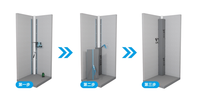 第1步:將杰愛板內襯條粘接在墻面,用帶有8mm鉆頭的電錘及錨固件將內襯條固定在墻面。