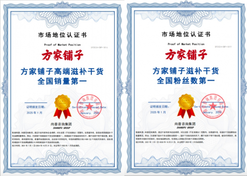 通過科技賦能和服務升級,方家鋪子為消費者帶來更加科學高效的滋補體驗,強化了其“滋補干貨”領域專家品牌心智,在銷量上,也被尚普咨詢認證為“滋補干貨全國銷量第一”“高端滋補干貨全國銷量第一”。截至目前,方家鋪子已經累計服務超2000萬家庭,收獲超500萬字用戶真實好評,已成為消費者心目中滋補干貨的不二選擇。