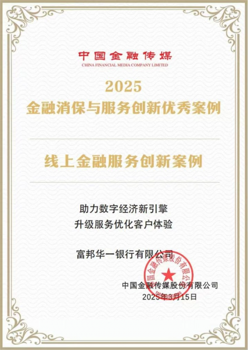 喜訊!富邦華一銀行數(shù)字人民幣項(xiàng)目建設(shè)榮膺“線上金融服務(wù)創(chuàng)新案例”
