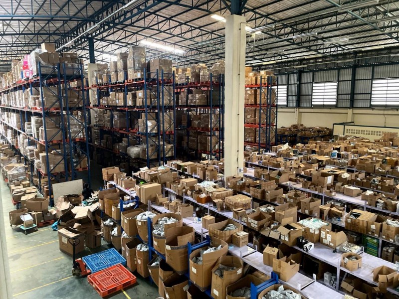 25號下午3點,我們踏入了商舟跨境合作的曼谷喜運達海外倉,映入眼簾的是大型貨架集成、多個工人操作運轉的場景。這座海外倉占地1萬平米的倉儲中心,日均處理訂單量超2萬單,服務了幾十個頭部肩部賣家,覆蓋泰國全境及周邊國家,主要服務平臺為Shopee、Lazada、TikTok Shop。貨架上,“中國制造”的電子產品、家居用品、美妝產品分類清晰,等待24小時內送達消費者手中。