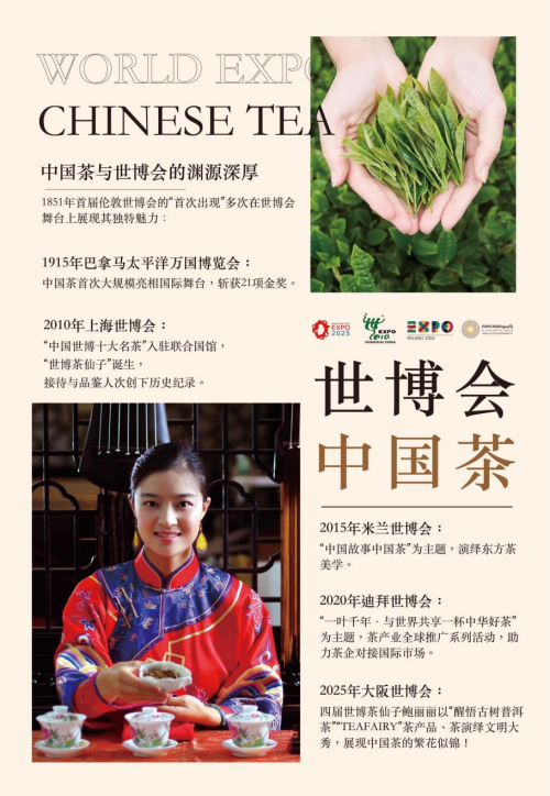 茶文化作為中華文明的重要載體,連接全球文明的紐帶,將在本屆世博會承擔跨文化交流的使命。中國茶文化推廣大使、四屆世博會茶仙子鮑麗麗將全面展示中國茶自然、技藝、演繹文明,將精致的東方中式美學生活、TEAFAIRY產品、文化通過本次盛會與世界連接,讓全球的來賓感受到多元的、芬芳的中國茶。