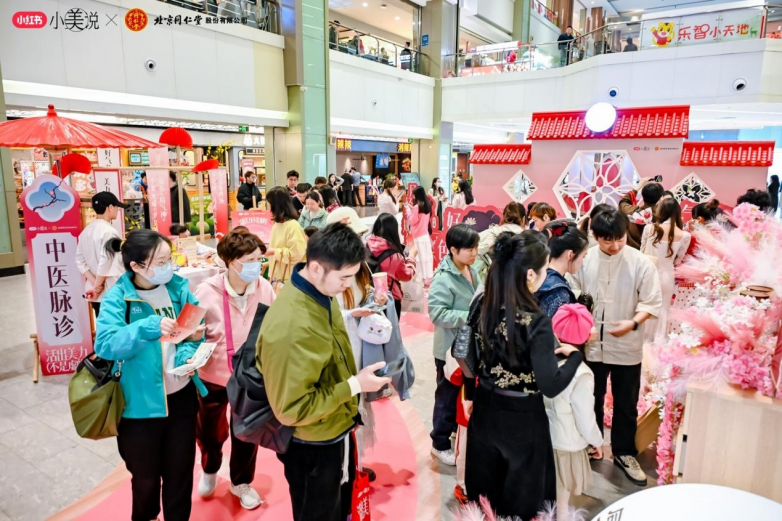3月8日當天,北京同仁堂與小紅書「小美說」還共同推出了線下快閃活動;顒蝇F場花樹、卷軸、紅扇、拱門、古風打卡墻等布置將女神節活動氛圍拉滿;顒訁⑴c者通過入口處領取“處方箋”集章卡,在國風NPC的指引下,前往各個區域完成推舉向上、中藥花柜、情景劇場、古法健身操、中醫脈診等打卡游戲體驗,便可參與抽獎活動。當天活動線下人流量近14.7萬,活動參與人數超550人。