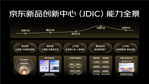 京東新品創新中心(JDIC)可以通過大數據洞察與小數據調研結合,深入產品的定位期、研發期、測試期、首發期以及上市后的各個階段,全流程數智化賦能品牌上新和營銷,提升新品的確定性。