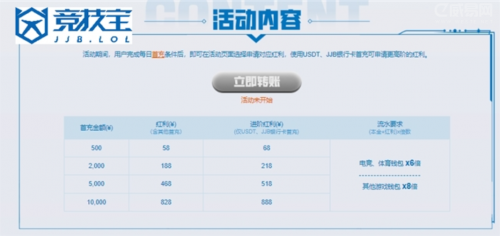 活動內(nèi)容:用戶每日首次轉入賬戶達到一定的金額,就可以直接在活動頁面選擇對應的獎勵,最高可達888元,超低門檻超高獎勵!