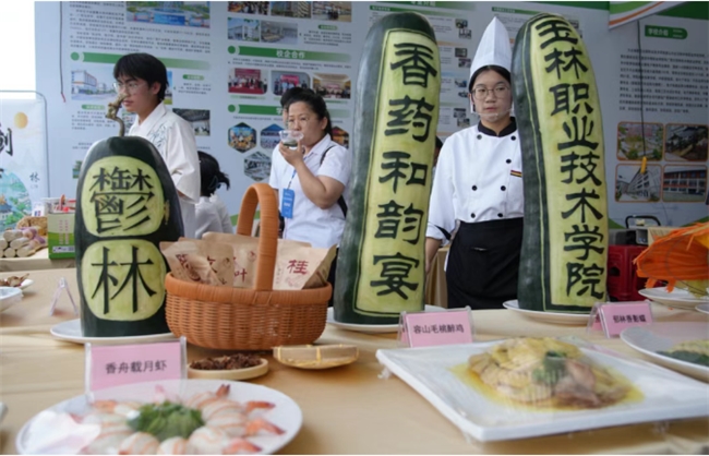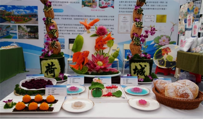 活動(dòng)現(xiàn)場(chǎng)分為職業(yè)教育高質(zhì)量發(fā)展、產(chǎn)教融合、職教出海、技能成才、社會(huì)服務(wù)和民族文化傳承六大展區(qū),智能實(shí)訓(xùn)設(shè)備、科技作品與數(shù)字化教學(xué)場(chǎng)景等職教“黑科技”的展示令人大開眼界,廚藝、茶藝等技能和刺繡、扎染等非遺技藝或火熱、或優(yōu)美,學(xué)生們把“課堂”搬進(jìn)活動(dòng)中,表現(xiàn)出卓越的綜合素養(yǎng)。