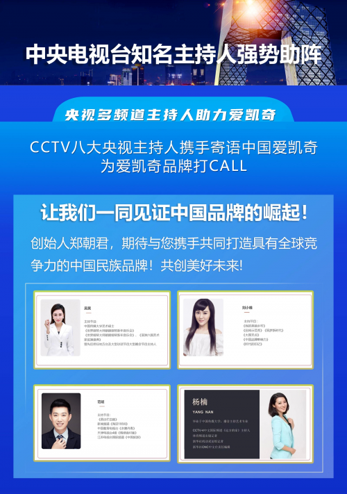 CCTV央視知名主持人李艾霏老師強勢助陣中國愛凱奇!