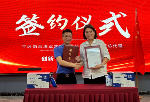 左:平遠南臺酒業營銷有限公司國際市場總監陳樹越 、中:馬來西亞拿督夫人王愛玲女士、右:平遠南臺酒業營銷有限公司國際市場總監農賢富先生