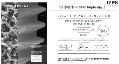 愛瑧IZEN (又名:愛臻)種植牙株式會(huì)社(Izenimplant Co., Ltd.)的成長史,堪稱一部口腔種植技術(shù)的創(chuàng)新史。自2016年以來,愛瑧IZEN (又名:愛臻)便以研發(fā)實(shí)力為核心驅(qū)動(dòng)力,逐步構(gòu)建起覆蓋種植體設(shè)計(jì)、數(shù)字化修復(fù)工具及手術(shù)導(dǎo)板的全產(chǎn)業(yè)鏈布局。2018年,愛瑧IZEN (又名:愛臻)先后通過韓國KGMP醫(yī)療器械認(rèn)證和ISO 13485質(zhì)量管理體系認(rèn)證,奠定其國際化制造標(biāo)準(zhǔn);2021年,其牙種植體修復(fù)體獲得美國FDA 510K認(rèn)證,成為少數(shù)打入歐美市場(chǎng)的亞洲品牌之一;至2023年,愛瑧IZEN (又名:愛臻)更憑借創(chuàng)新技術(shù)入選“韓國全球領(lǐng)先企業(yè)1000強(qiáng)”,并在同年斬獲德國潔凈植體基金會(huì)(Clean Implant Foundation)頒發(fā)的“潔凈植體”認(rèn)證,躋身全球高端種植體品牌行列。