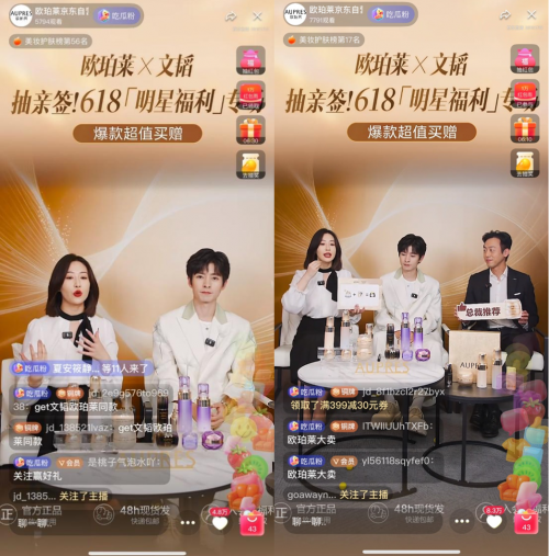文韜的學霸匠心形象與歐珀萊 JSJ 理念深度契合 —— 以科研思維呼應 J尖端科技、用實用態度詮釋 S實用主義、憑匠心精神踐行 J匠心精神,共塑科技煥新年輕肌的品牌主張。在京東MALL雙井店線下見面會及京東采銷直播間的雙線場景中,歐珀萊以極具親和力的互動將深層滋養如解數學題的邏輯植入年輕群體認知,通過各種實驗游戲等具象化場景將原理等專業內容轉化為可感知的煥新方法論,實現學霸思維與科技修護的認知嫁接。