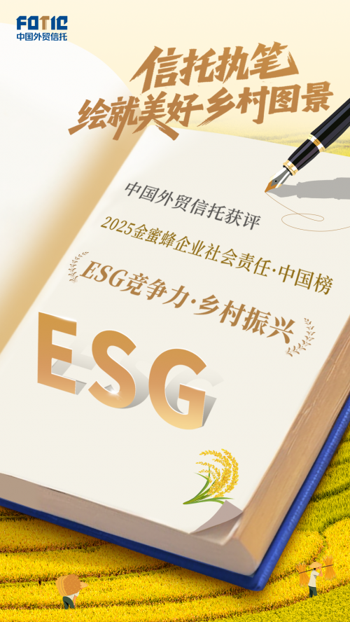 核心提示:近日,“第二十屆中國企業(yè)社會責任/ESG 國際論壇暨‘2025 金蜜蜂企業(yè)社會責任·中國榜’發(fā)布典禮”在京舉行,中國外貿信托首次參評即榮膺“ESG 競爭力·鄉(xiāng)村振興”獎,也是唯一一家獲評“金蜜蜂”獎的信托公司。近日,“第二十屆中國企業(yè)社會責任/ESG 國際論壇暨‘2025 金蜜蜂企業(yè)社會責任·中國榜’發(fā)布典禮”在京舉行,中國外貿信托首次參評即榮膺“ESG 競爭力·鄉(xiāng)村振興”獎,也是唯一一家獲評“金蜜蜂”獎的信托公司。此次獲獎,不僅是對公司在鄉(xiāng)村振興領域實踐成果的高度認可,更彰顯了公司在ESG理念融入企業(yè)發(fā)展、打造可持續(xù)競爭力等方面的卓越成效。