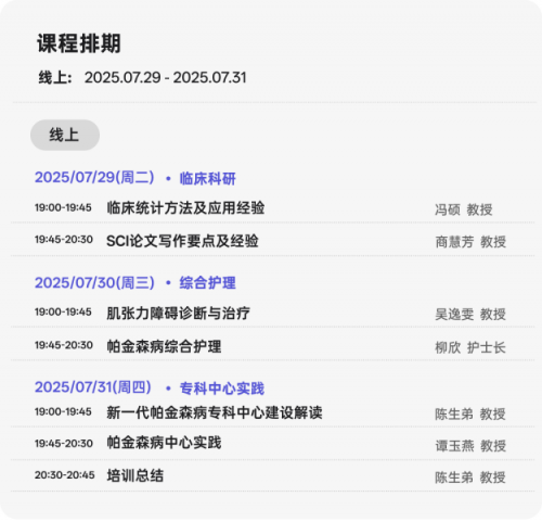 帕金森病專科綜合培訓(xùn)班(第一期)線上課程排期表