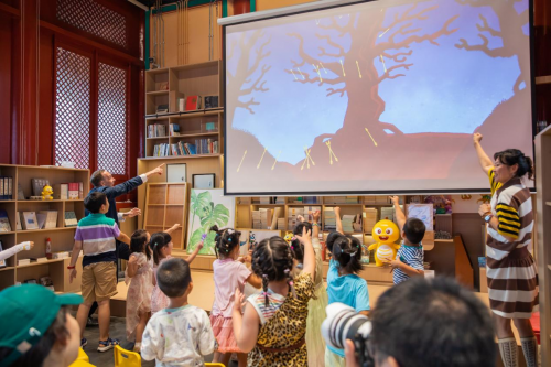 VIPKID Dino閱讀館里最受孩子們歡迎的杰瑞叔叔,這次在滿是濃厚文化氣息的場(chǎng)地,給大小孩子們帶來《后羿射日》雙語(yǔ)互動(dòng)魔法劇。《后羿射日》作為中國(guó)民間文學(xué),在2016年5月被列入保定市第五批非物質(zhì)文化遺產(chǎn)項(xiàng)目名錄。本次杰瑞叔叔以顛覆傳統(tǒng)的表演形式,為現(xiàn)場(chǎng)的30組家庭帶來了一場(chǎng)沉浸式的雙語(yǔ)繪本劇。