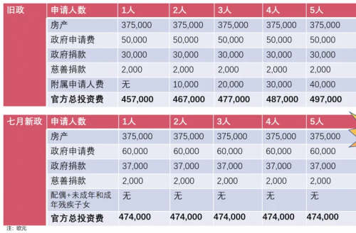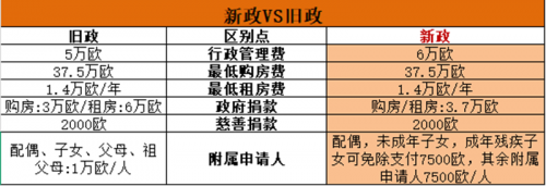 由上可以看出,行政管理費(fèi)由5萬(wàn)歐漲至6萬(wàn)歐,打包式報(bào)價(jià),家庭成員越多越劃算。附屬申請(qǐng)人費(fèi)用由1萬(wàn)歐調(diào)整至7500歐,這里有以下兩點(diǎn)需要注意
