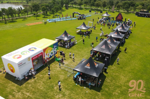 為讓參賽家庭深度感受品牌溫度,GNC健安喜以“沉浸式營養體驗”為核心,打造了極具辨識度的互動展臺,在海灣森林公園中宛如一個巨型的“營養能量站”,瞬間吸引了眾多家庭的目光。