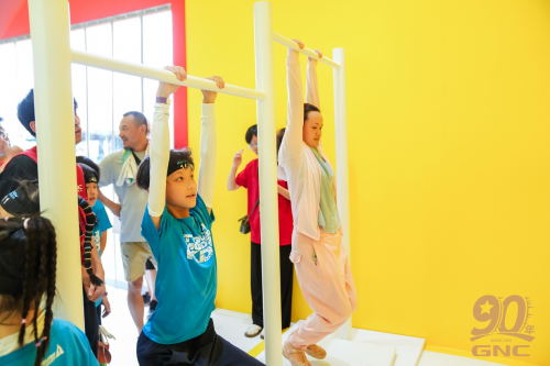 互動區中,「活力萌友圈」「堅持不“吊”隊」兩大特色活動深受孩子們喜愛。其中,「堅持不“吊”隊」作為親子協作挑戰項目,通過家長與孩子的共同參與,傳遞“營養助力成長、陪伴見證突破”的概念,在趣味互動中深化親子關系。GNC希望借此讓更多家庭在輕松氛圍中關注兒童營養,守護成長每一步。