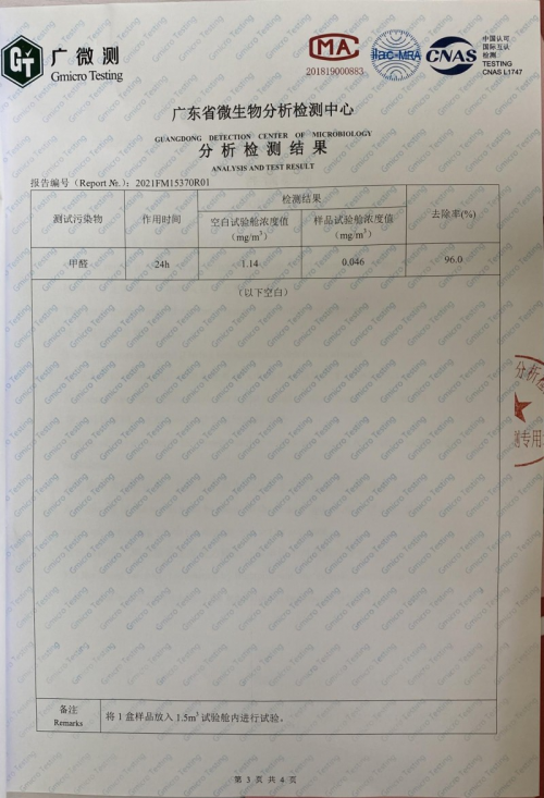 光催化效率:葉廣泥中的光催化劑,采用優質選材,不需要紫外線或者強光激活,就可以直接發揮作用,吸附后有效分解。室內環境完全滿足分解條件,實際催化分解效果高達96%甲醛去除率,98%甲苯去除率,非常優秀!