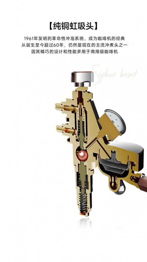 意式咖啡機(jī)實(shí)現(xiàn)精準(zhǔn)萃取,是最基礎(chǔ)的事情,但絕非易事。決定意式咖啡機(jī)萃取質(zhì)量高低有兩個(gè)比較最重要的因素,其一為沖煮系統(tǒng),其二為壓力系統(tǒng)。以海氏C9Pro開創(chuàng)者咖啡機(jī)為例,沖煮系統(tǒng)選用E61純銅虹吸頭和商用雙鍋爐,熱虹吸效應(yīng)保證了熱水循環(huán)流動(dòng),而水溫正是保證精準(zhǔn)萃取的關(guān)鍵,同時(shí)水溫恒定也能保證商用連續(xù)穩(wěn)定出杯,口感可以達(dá)到一致。