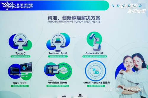 除了CyberKnife S7,中核安科銳也同步展示了多款業界領先的技術產品。如Radixact SynC具備領先的運動腫瘤同步追蹤能力,通過智能驅動的個體化運動模型配合ClearRT高清成像方案,特別適合易受呼吸運動影響的癌種治療。