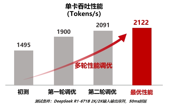 本次中國電信和華為公司共同合作,完成翼芯測試平臺與昇騰384卡超節點對接優化,針對13項基準性能、6類典型場景推理性能,采用5類典型資源配置開展自動化測試;同時嘗試采用了算子融合替換、PD分離調度、KV cache優化、集合通信優化、并行策略優化等多維度的調優策略,不斷將吞吐性提升到最大。經充分優化后,DeepSeek 671B模型在多種場景下的單卡吞吐性能較優化前有2.5~4.3倍提升;在保證TTFT為1.28s、TPOT為50ms的服務質量指標下,單卡吞吐達到了2122 Tokens/s,較業界前期測試最佳性能提升9.2%。