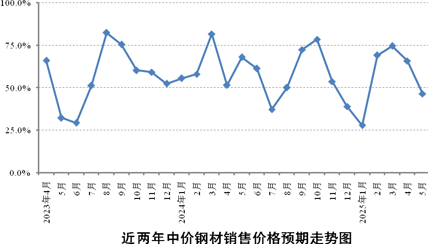 核心提示:據對全國重要鋼材批發市場調查,5月鋼材批發市場銷售價格預期指數、購進價格預期指數分別為46.43%、45.33%,比上月分別下降19.31、20.74個百分點,并且均低于5據對全國重要鋼材批發市場調查,5月鋼材批發市場銷售價格預期指數、購進價格預期指數分別為46.43%、45.33%,比上月分別下降19.31、20.74個百分點,并且均低于50%分界線,反映出市場預計鋼材價格將偏弱運行。