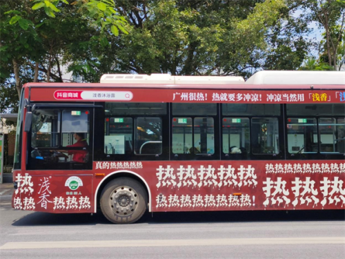還有最近刷屏全網(wǎng)的"彈幕公交",車身上密密麻麻的"熱熱熱熱熱熱熱熱熱熱熱熱熱熱熱!"配上"廣州很熱!熱就要多沖涼!沖涼當(dāng)然用淺香啦!"這種看似手滑的文案,卻把廣東人那種直來直去、不裝腔作勢的性格表現(xiàn)得淋漓盡致。