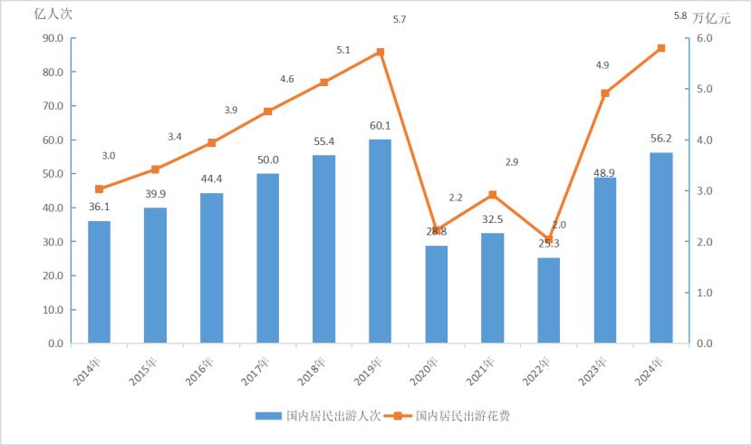 圖5:2014—2024年國(guó)內(nèi)旅游發(fā)展情況