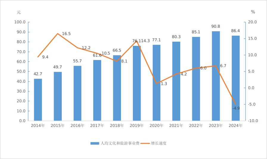 圖6:2014—2024年人均文化和旅游事業(yè)費(fèi)及增速情況