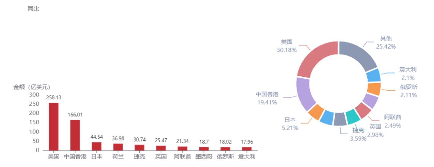 2022年前8月我國手機(jī)TOP10出口目的地
