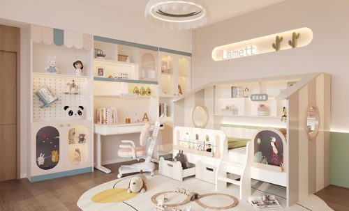 Lamett樂邁石晶兒童家居創意空間從健康出發,通過“零醛添加、防霉防菌、超越國際標準、滿足不同成長階段需求、創新主題設計、創新兒童友好生活方式”等優勢,推出“林間探險家”、“星際穿越”等六大主題系列產品,滿足孩子不同成長階段對居家空間的多樣化需求,一站式定制孩子的專屬創意空間。