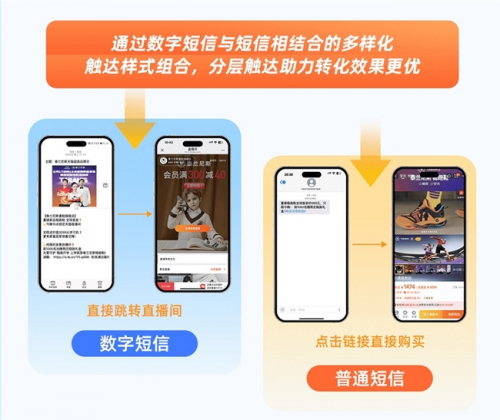 同時,通過慧博科技的 “分時觸達 + 內容適配 + 多樣化短信觸達” 能力:早午晚分時推送強化用戶認知,各階段匹配 “滿減免單”“新品禮盒” 等內容,還以數字短信(跳轉直播間)、普通短信(直接購買)的組合分層觸達,提升轉化效率。