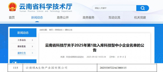 喜報(bào)!綠A生物連續(xù)三年入庫(kù)云南省科技型中小企業(yè)榜單
