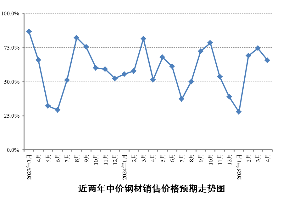核心提示:據(jù)對全國重要鋼材批發(fā)市場調(diào)查,4月鋼材批發(fā)市場銷售價格預(yù)期指數(shù)、購進(jìn)價格預(yù)期指數(shù)分別為65.74%、66.07%,雖均處于50%分界線之上,但比上月分別下降8.80、4.7據(jù)對全國重要鋼材批發(fā)市場調(diào)查,4月鋼材批發(fā)市場銷售價格預(yù)期指數(shù)、購進(jìn)價格預(yù)期指數(shù)分別為65.74%、66.07%,雖均處于50%分界線之上,但比上月分別下降8.80、4.76個百分點,反映出市場對鋼材價格的看漲預(yù)期較上月有所轉(zhuǎn)弱。