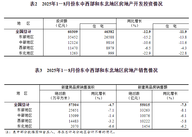 1—8月份,全國房地產(chǎn)開發(fā)投資60309億元,同比下降12.9%(按可比口徑計(jì)算,詳見附注6);其中,住宅投資46382億元,下降11.9%。