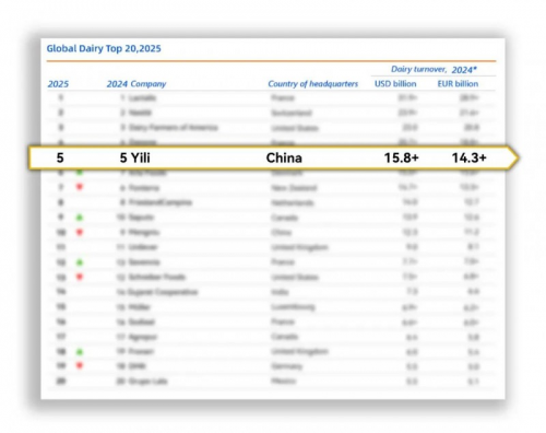 2025年全球乳業(yè)20強(qiáng)榜單發(fā)布 伊利股份穩(wěn)居全球乳業(yè)五強(qiáng)