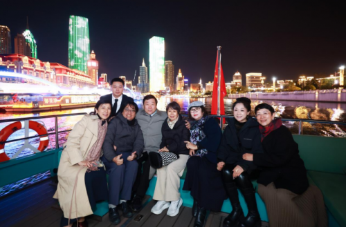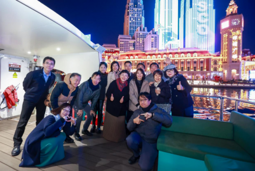 游覽參觀結束后,日本各大新聞主流媒體的總局長們又在潘慶林委員的引領下,爭先恐后的登上了天津海河游船。海河兩岸璀璨的燈火,幻影交織的霓虹燈光,如同天地生輝,為天津披上了一道絢麗美好的晚霞,日本朋友們贊嘆不止,紛紛拍照留念。