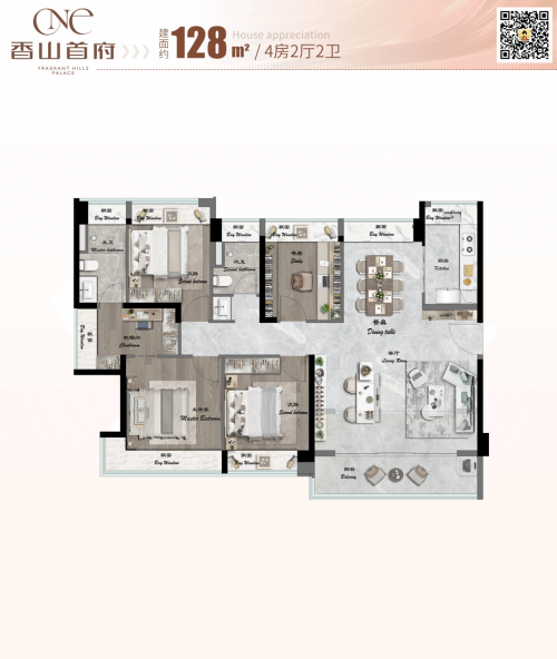 譬如建面約128㎡戶型,堪稱「夢中情房」。