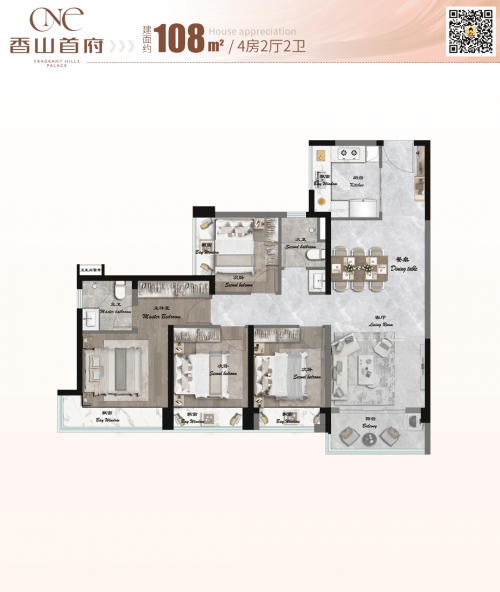 再來看看建面約108㎡戶型,板塊改善四房“斷貨王”。