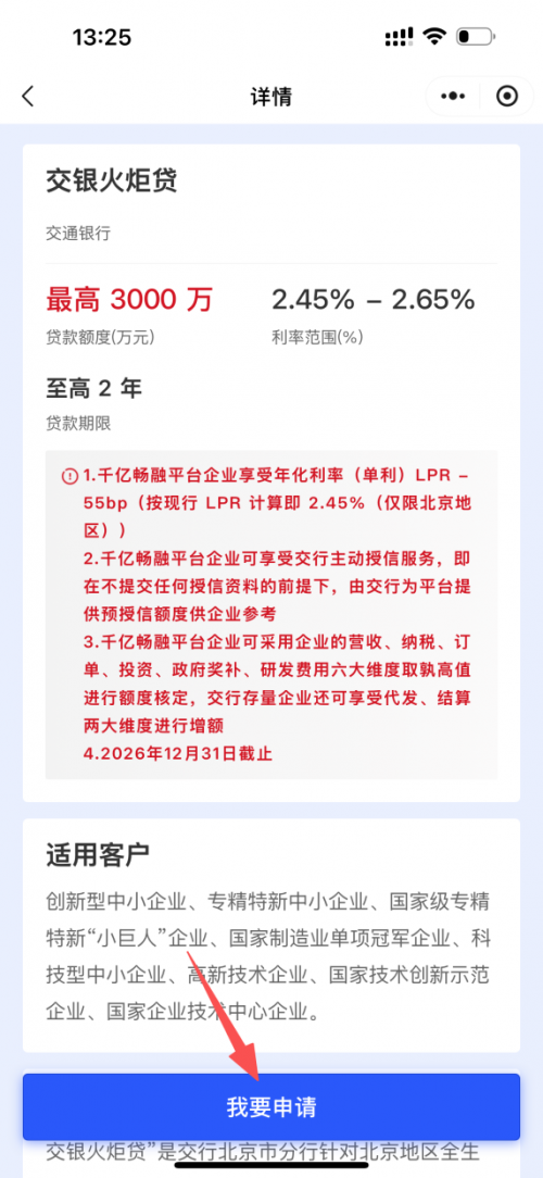 1. 千億暢融平臺申報企業(yè)享受年化利率(單利)LPR-55bp(按現(xiàn)行 LPR 計算即 2.45%(僅限北京地區(qū)))