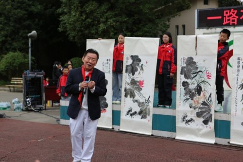 更令人動容的是,中國書畫家研究會的著名藝術家們帶來了45幅精心創作的書畫作品。其中劉振生先生作為京城墨武齊派畫家,親臨現場,用筆墨來鼓舞每一個在場的學生。他現場用一雙靈巧的雙手進行藝術創作,擅長畫蝦蟹與草蟲惟妙惟肖,栩栩如生,他堅持每日作畫,繪畫風格獨特,他雙手繪畫出的一只只洋溢生命力的小蝦,猶如會呼吸的藝術生命體。
