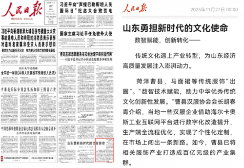 核心提示:11月27日,《人民日報》頭版和17版兩次聚焦海爾集團(tuán),引發(fā)廣泛關(guān)注。從賦能傳統(tǒng)產(chǎn)業(yè)升級到呼應(yīng)民生消費(fèi)需求,兩次報道的背后,是海爾以用戶為中心、以科技為引擎的高質(zhì)量發(fā)展路徑,為企業(yè)創(chuàng)新樹立了標(biāo)桿。11月27日,《人民日報》頭版和17版兩次聚焦海爾集團(tuán),引發(fā)廣泛關(guān)注。從賦能傳統(tǒng)產(chǎn)業(yè)升級到呼應(yīng)民生消費(fèi)需求,兩次報道的背后,是海爾以用戶為中心、以科技為引擎的高質(zhì)量發(fā)展路徑,為企業(yè)創(chuàng)新樹立了標(biāo)桿。《人民日報》頭版報道海爾卡奧斯賦能曹縣馬面裙“出圈”的實(shí)踐。菏澤曹縣,馬面裙等傳統(tǒng)服飾“出圈”。“數(shù)智技術(shù)賦能,助力中華優(yōu)秀傳統(tǒng)文化創(chuàng)新性發(fā)展。”曹縣漢服協(xié)會會長胡春青介紹,當(dāng)?shù)匾恍h服企業(yè)借助海爾卡奧斯工業(yè)互聯(lián)網(wǎng)平臺進(jìn)行數(shù)字化改造提升,生產(chǎn)端全流程優(yōu)化,實(shí)現(xiàn)了個性化定制,在市場上闖出一條新路。如今,曹縣已將相關(guān)服飾產(chǎn)業(yè)打造成百億級的產(chǎn)業(yè)集群。