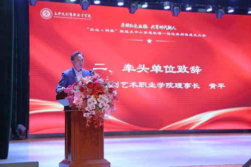 大會在莊嚴的國歌聲中開幕。長沙文創藝術職業學院理事長黃平在致辭中表示,學校牽頭組建“賡續紅色血脈,共育時代新人——‘文化+科技’賦能大中小學思政課一體化共同體”,是貫徹落實省委教育工委文件精神、服務“大思政課”格局的重要實踐。黃平強調,作為牽頭單位,學校將主動擔當“聯絡員”“服務員”和“探路者”,充分發揮“文化+科技”辦學特色,與各成員單位共同研發課程資源、培育師資、打造品牌,探索文創特色的大中小學思政課一體化建設新模式。11月18日,湖南省首個“文化+科技”品牌研究中心在學校揭牌成立,也為共同體建設提供了堅實的技術資源與案例支撐。