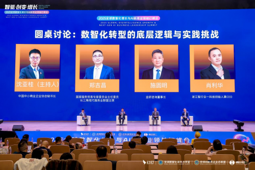 由中國中小商業企業協會秘書長沈亞桂主持,浙江省服務業聯合會會長鄭吉昌、金研咨詢董事長施圓明、智行合一創始人肖利華等嘉賓,從戰略、組織、技術等多維度深入剖析。討論認為,轉型成功的關鍵在于頂層設計、組織適配與文化變革,而非單純技術引入,需克服數據孤島、人才短缺及變革阻力等核心挑戰。